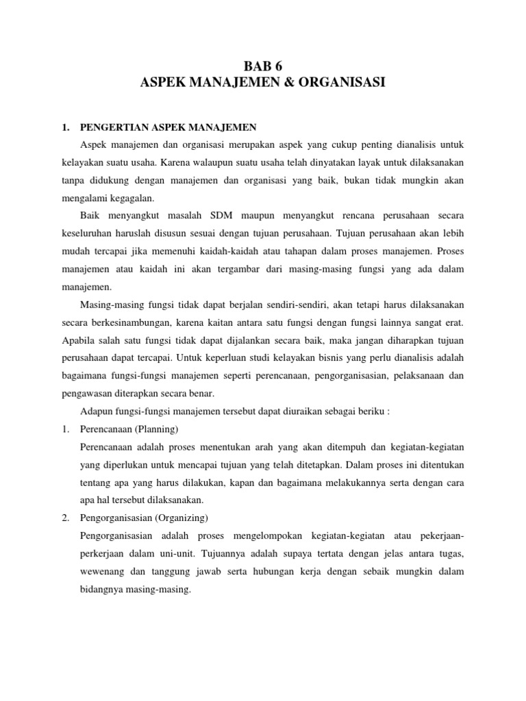 Ketika itu, ia menyebutkan lima fungsi manajemen, yaitu merancang, mengorganisir, memerintah, mengordinasi, dan mengendalikan. Aspek hukum aspek hukum menkajii tentang legalitas usulan proyek yang akan dibangun dan dioperasikan, ini berarti bahwa setiap proyek yang akan didirikan dan dibangun di wilayah tertentu haruslah memenuhi hukum dan tata peraturan yang berlaku di wilayah tersebut. Posting pada ekonomi ditag 7 aspek studi kelayakan bisnis, alasan kelayakan bisnis dilaksanakan, analisis bisnis dan studi kelayakan usaha, analisis dan penilaian aspek manajemen, apa isi studi kelayakan bisnis, apa yang anda ketahui aspek studi kelayakan bisnis ditinjau dari aspek hukum berikan contohnya, apakah bentuk dari hasil studi kelayakan bisnis, artikel tentang studi kelayakan usaha.